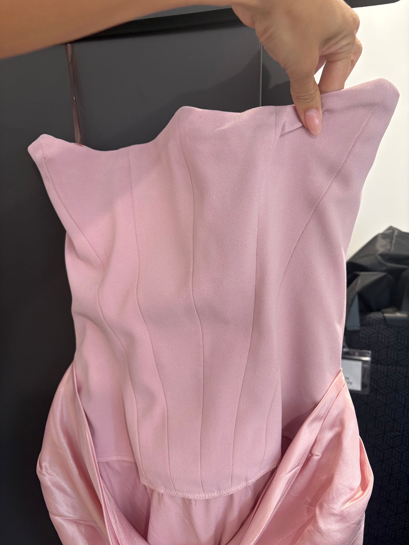 • Faint grey boning markings across the top of bust.