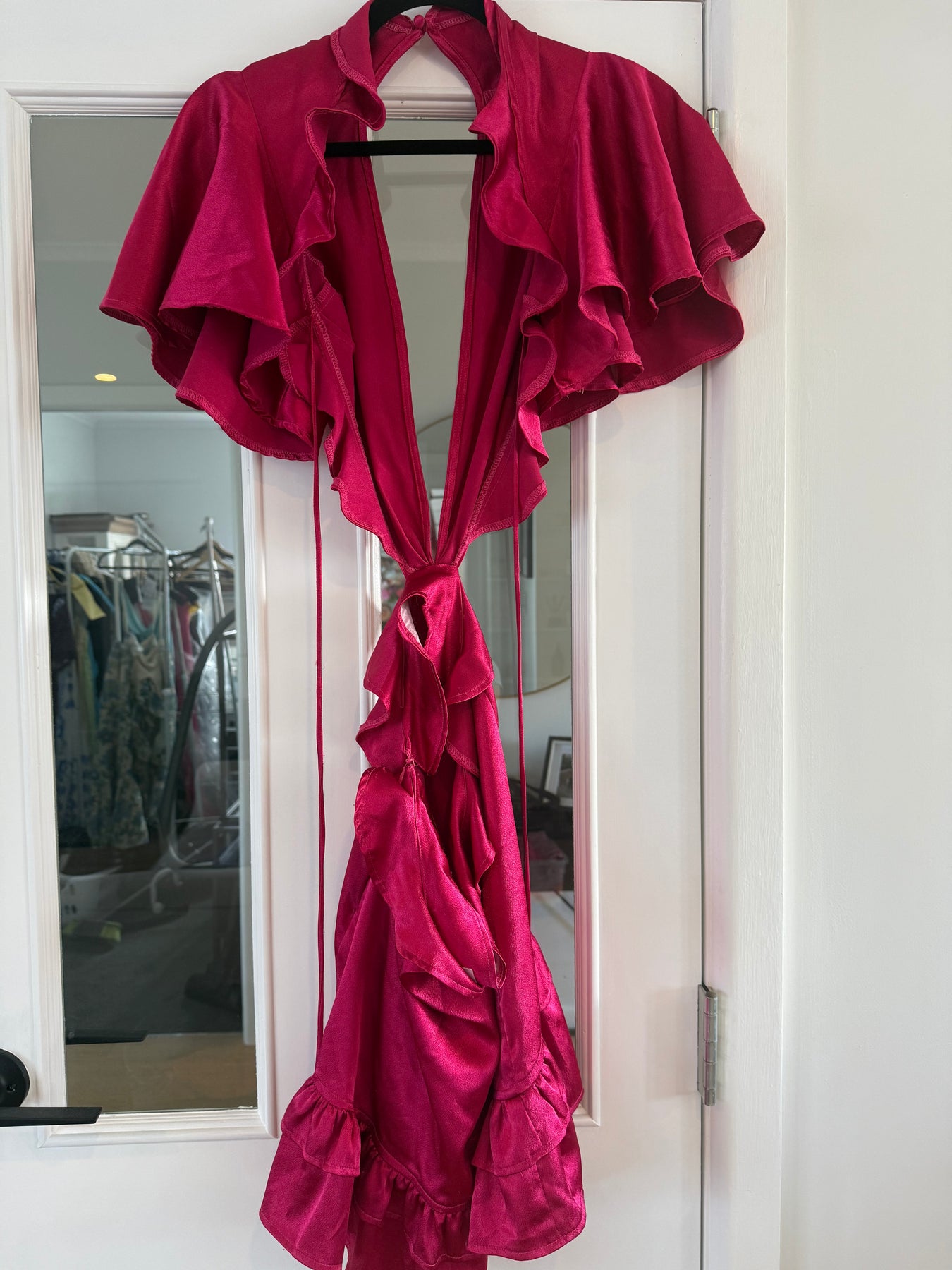 A fun and flirty mini to take you into the warmer months, the Wings mini features a deep V neckline, open back with self tie feature and frill on hem. Adjustable ties.